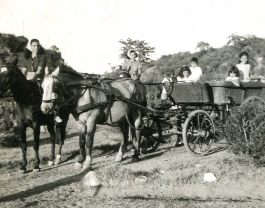 Pedro Cazenave, Delia Moyano de Cazenave, Piruli y Marta Cazenave, Dedé Castelhum y su hija Haydée Semprum en Santa Catalina, Ascochinga